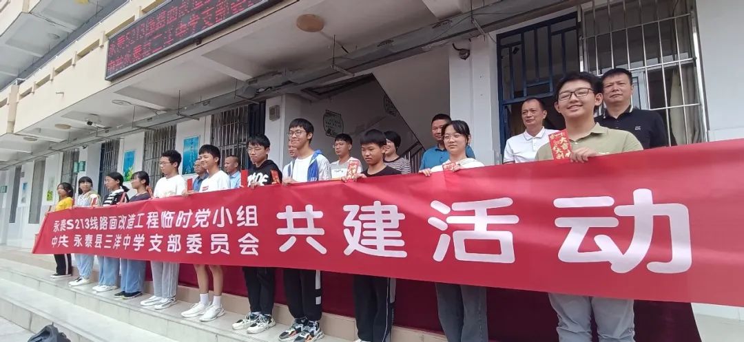 2022年9月26日,永泰S213線路面改造工程臨時(shí)黨小組與永泰縣三洋中學(xué)黨支部舉行一次別開(kāi)生面的黨建共建活動(dòng)。參加這次活動(dòng)的有永泰縣公路局領(lǐng)導(dǎo)、永泰S213線路面改造工程臨時(shí)黨小組成員以及三洋中學(xué)師生。本次助力愛(ài)心活動(dòng),永泰縣縣S213線路面改造工程臨時(shí)黨小組為三洋中學(xué)捐助籃橋架一副、LED顯示屏一幅、表彰優(yōu)秀學(xué)生15人、修繕食堂后面路面等?;顒?dòng)由三洋中學(xué)支部副書(shū)記吳清傳主持,共有四個(gè)議程。